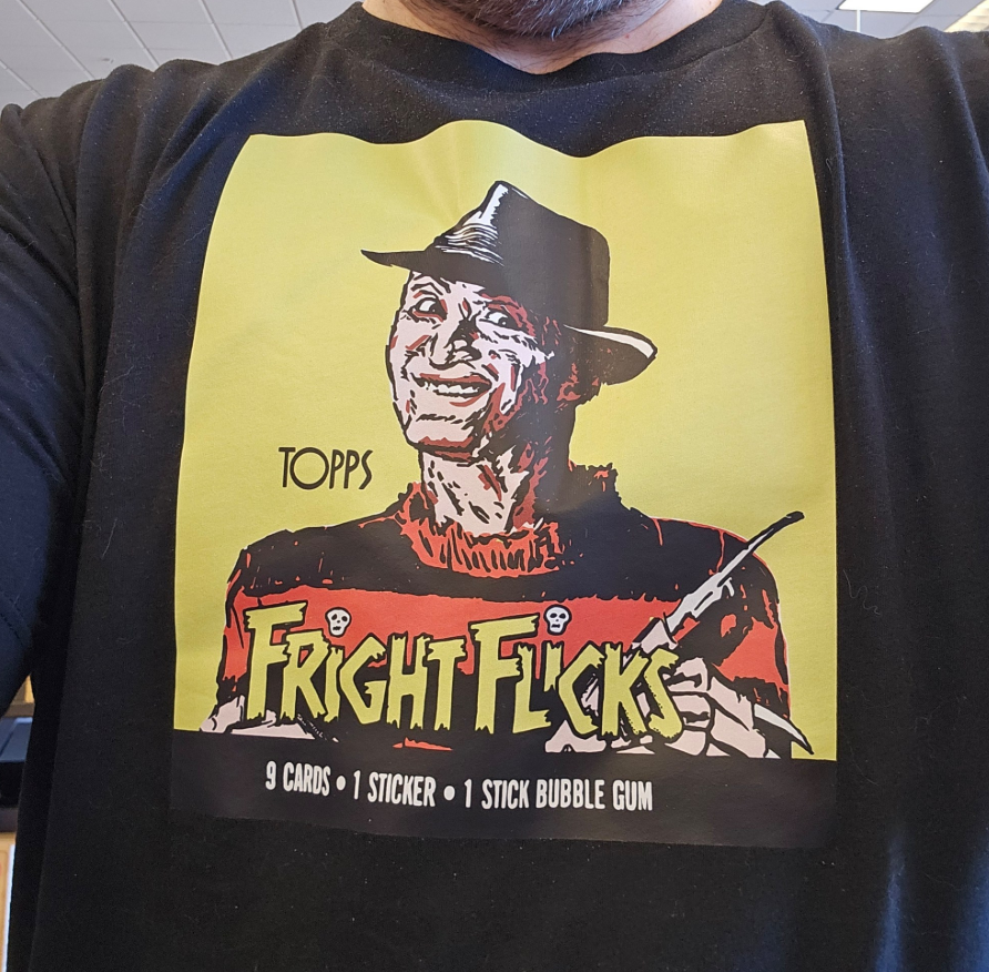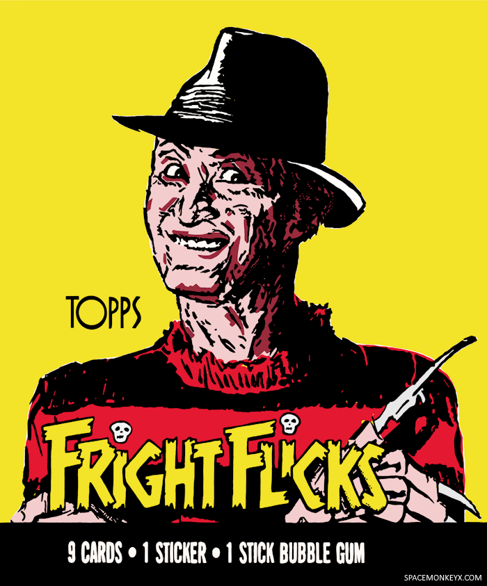 I was already looking for inspiration for a Halloween t-shirt design and I decided it would be cool to recreate the Freddy artwork. I found a photo of the packaging online, brought it into Procreate, and simply began tracing it, using different layers to create the overlapping colors. I was pretty happy with the results and thought it would be fun to do the rest of the Fright Flicks waxpack artwork (so far I’ve only finished Pumpkinhead, but the rest are in-process). The next thing I knew I was scouring the web for waxpacks and spending hours of time recreating them.